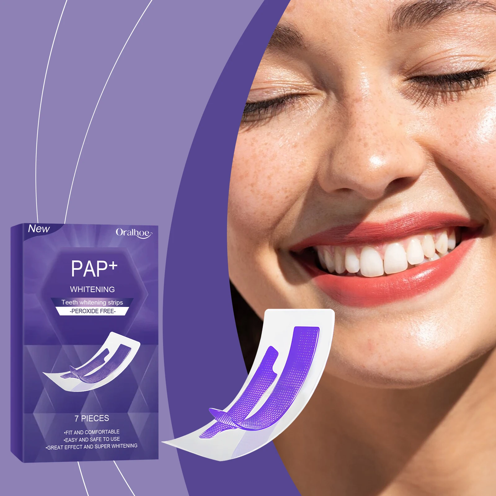 Oralhoe 7pcs Teeth Whitening Strips Remove Yellow Plaque Perfect Smile Mint Fresh Breath Peroxide Free Teeth Bleaching Strips