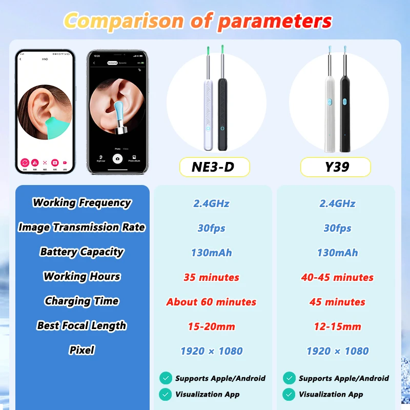 - Material: Medical-grade silicone (ear scoops), ABS plastic (camera body)